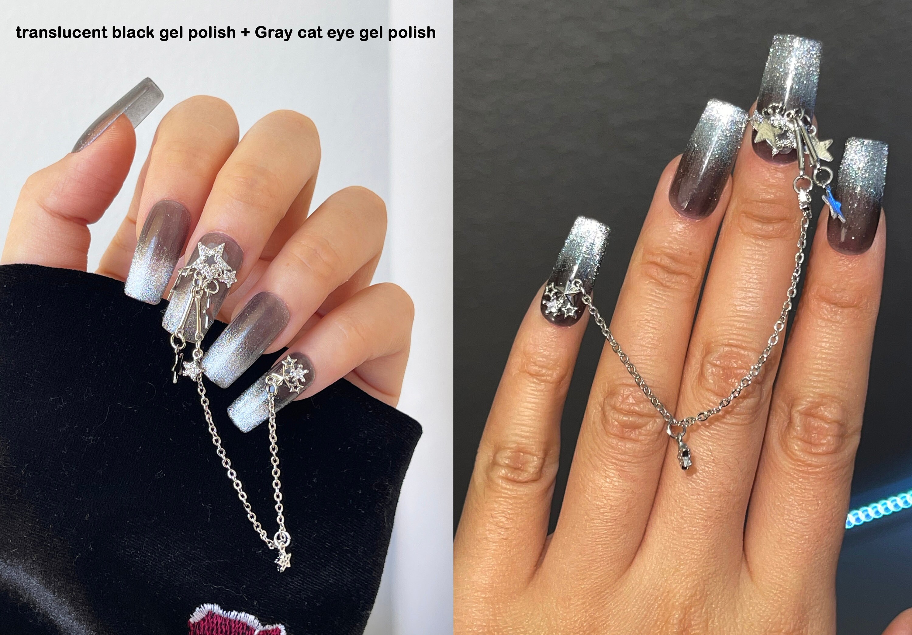 Silver Nail Jewelry 3d Link Chain Zircon Nails Ornament Etsy